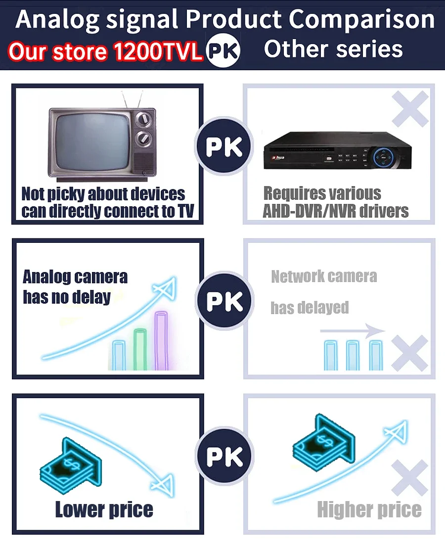 In The HD Analog signal camera, High quality in 1200TVL; More Details Captured.