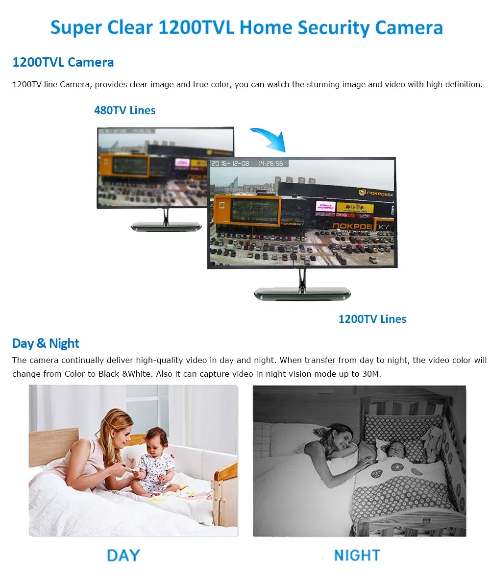 h-1200TVL security camera has a line resolution of 1920P*1080P,