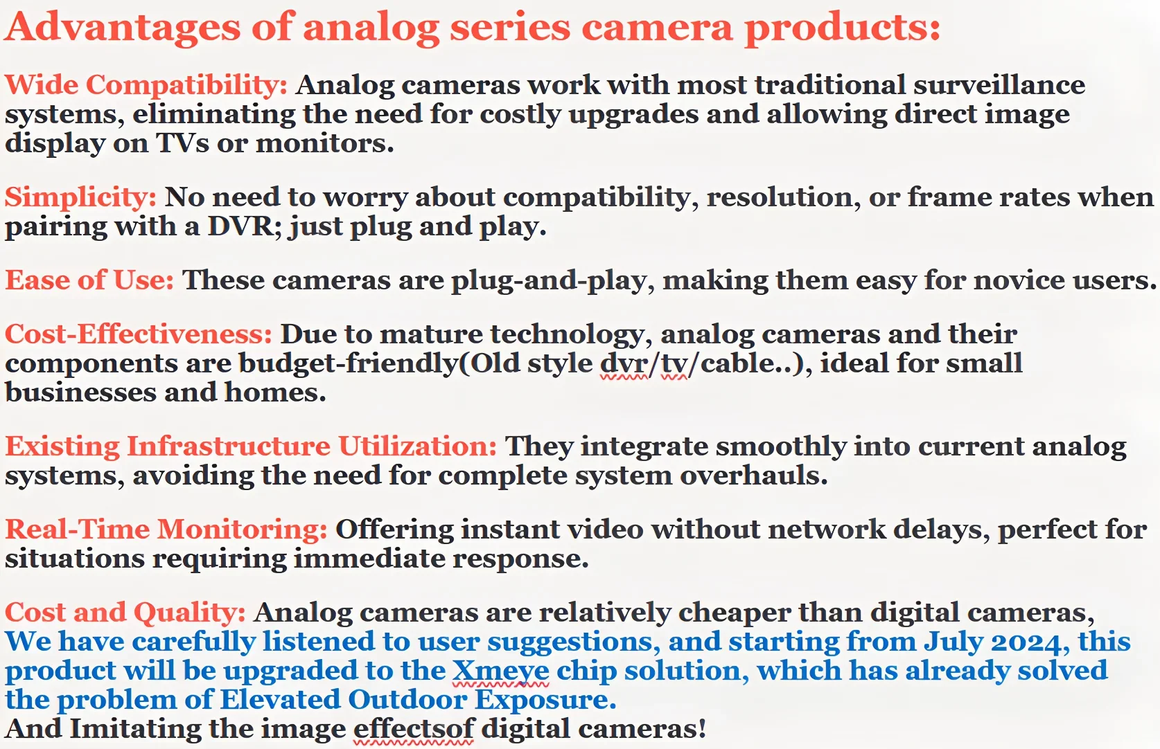 In The HD Analog signal camera, High quality in 1200TVL; More Details Captured.